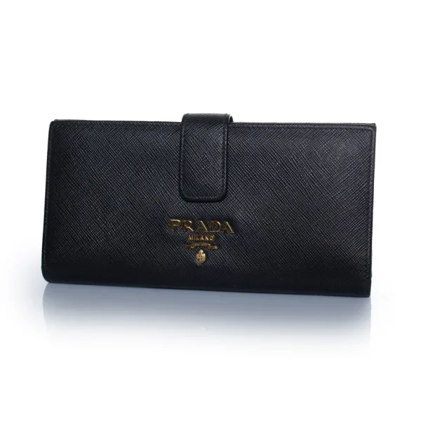 - Bij secretsales.nl kun je Prada, zwarte saffiano leren portemonnee kopen voor slechts €490,00