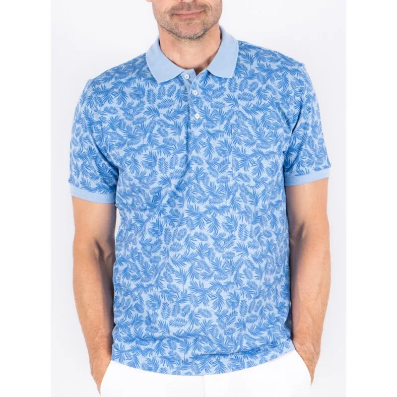 Lichtblauwe heren polo van het label Pre-End. Deze polo heeft een allover blad-print en handig borstzakje. Regular fit 100% Katoen Kleurnummer: 7032