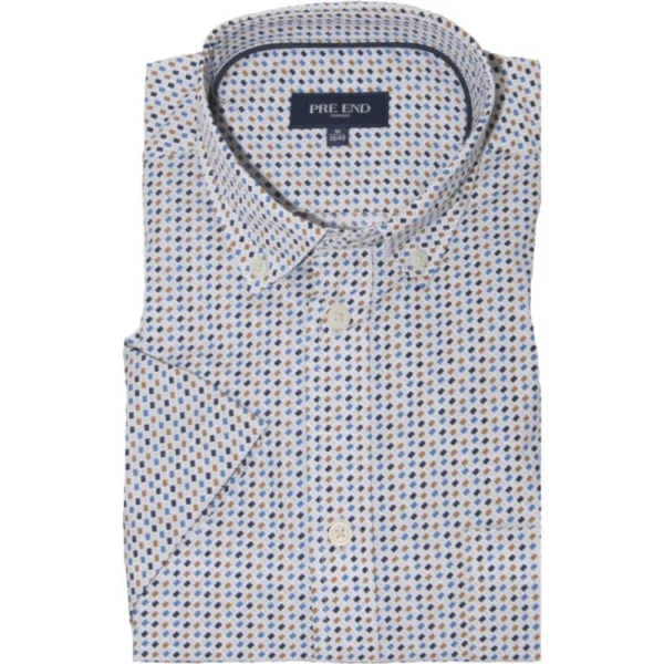 Casual heren shirt met korte mouwen en een allover minimal dessin van het Deense label Pre-End. Regular fit Borstzakje 60% Katoen/ 40% Polyester