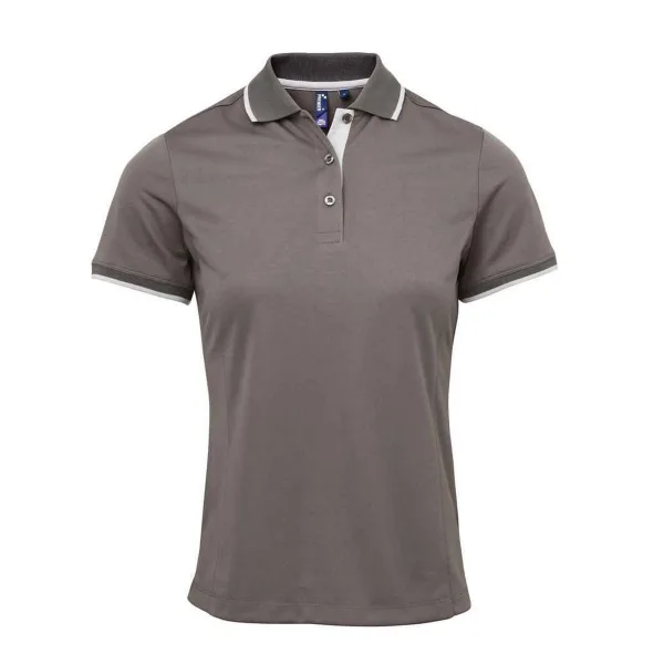 Premier Dames/Dames Coolchecker Contrast Piqué Poloshirt (Donkergrijs/zilver) Prijzen