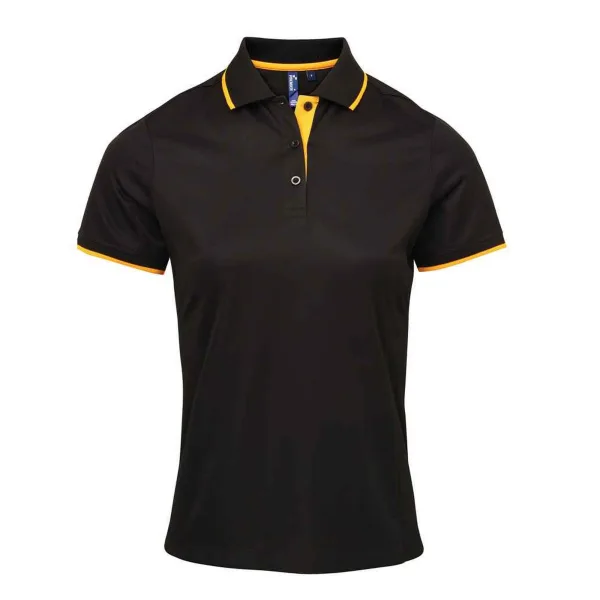 Premier Dames/Dames Coolchecker Contrast Piqu Poloshirt (Zwart/Zonnebloem)