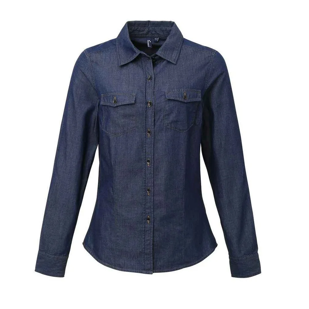 Premier Dames/Dames Denim Jean stijl gestikt overhemd (Indigo Denim)