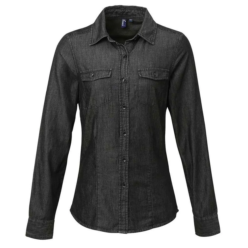 Premier Dames/Dames Denim Jean stijl gestikt overhemd (Zwarte denim)