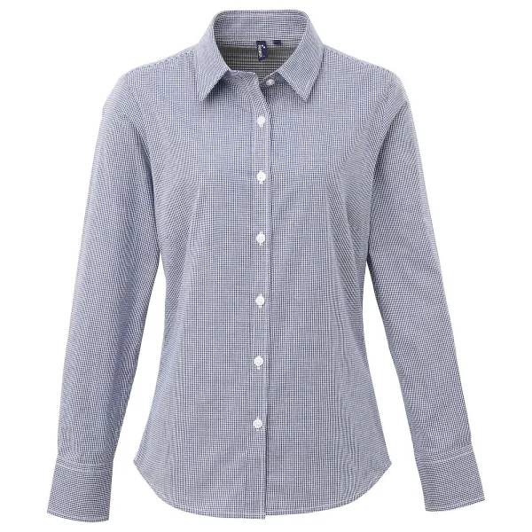 Premier Dames/Dames Gingham Shirt Met Lange Mouwen (Marine / Wit) Prijzen