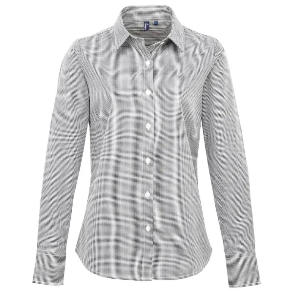 Premier Dames/Dames Gingham Shirt Met Lange Mouwen (Zwart/Wit) Prijzen