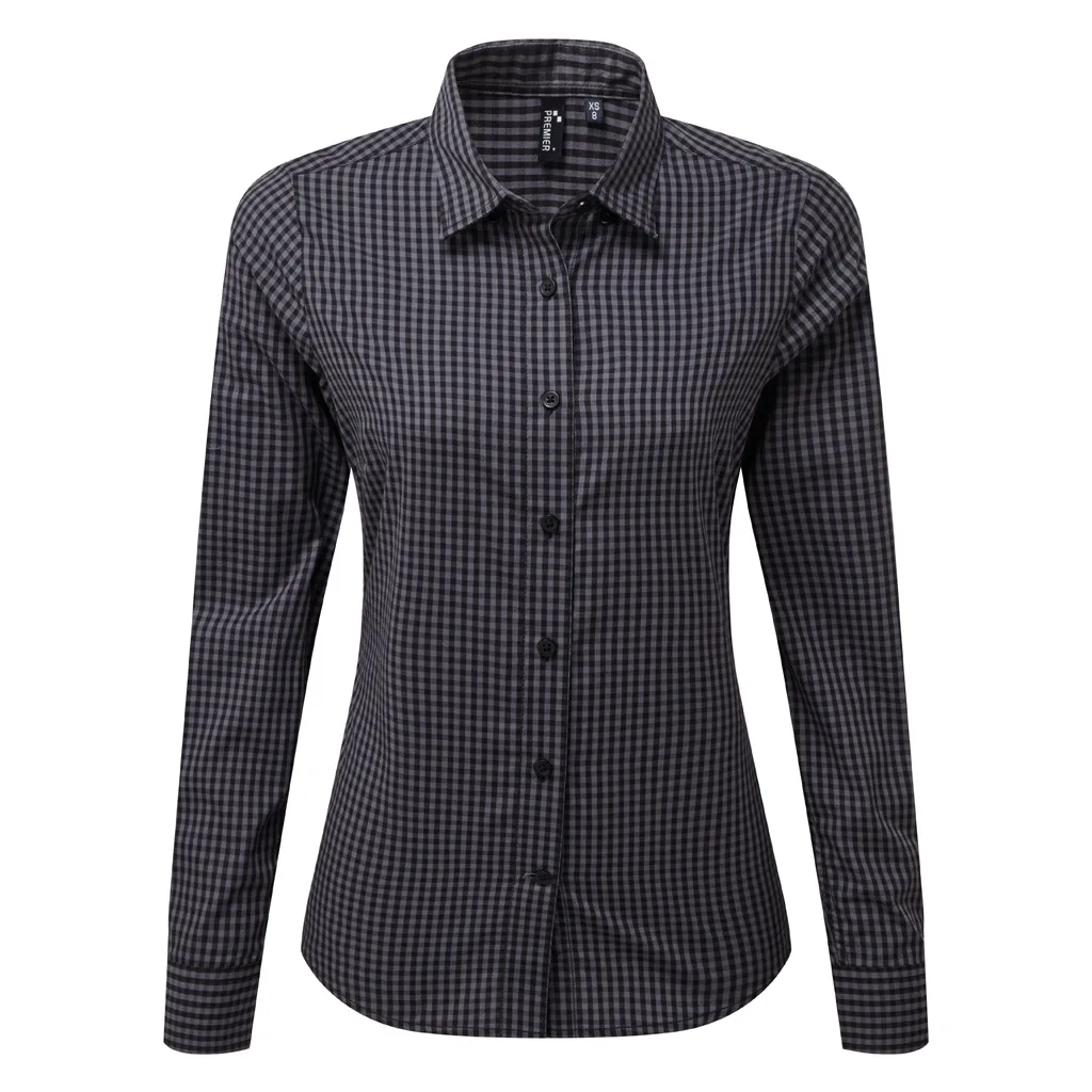 Premier Damesdames Maxton Check Shirt met lange mouwen StaalZwart