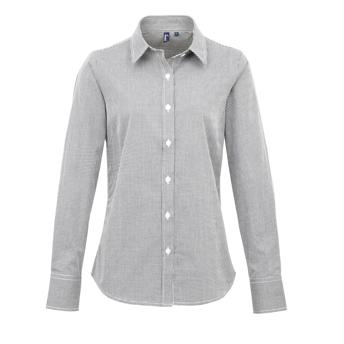 Premier Dames/dames Microcheck Shirt met lange mouwen (Zwart/Wit)