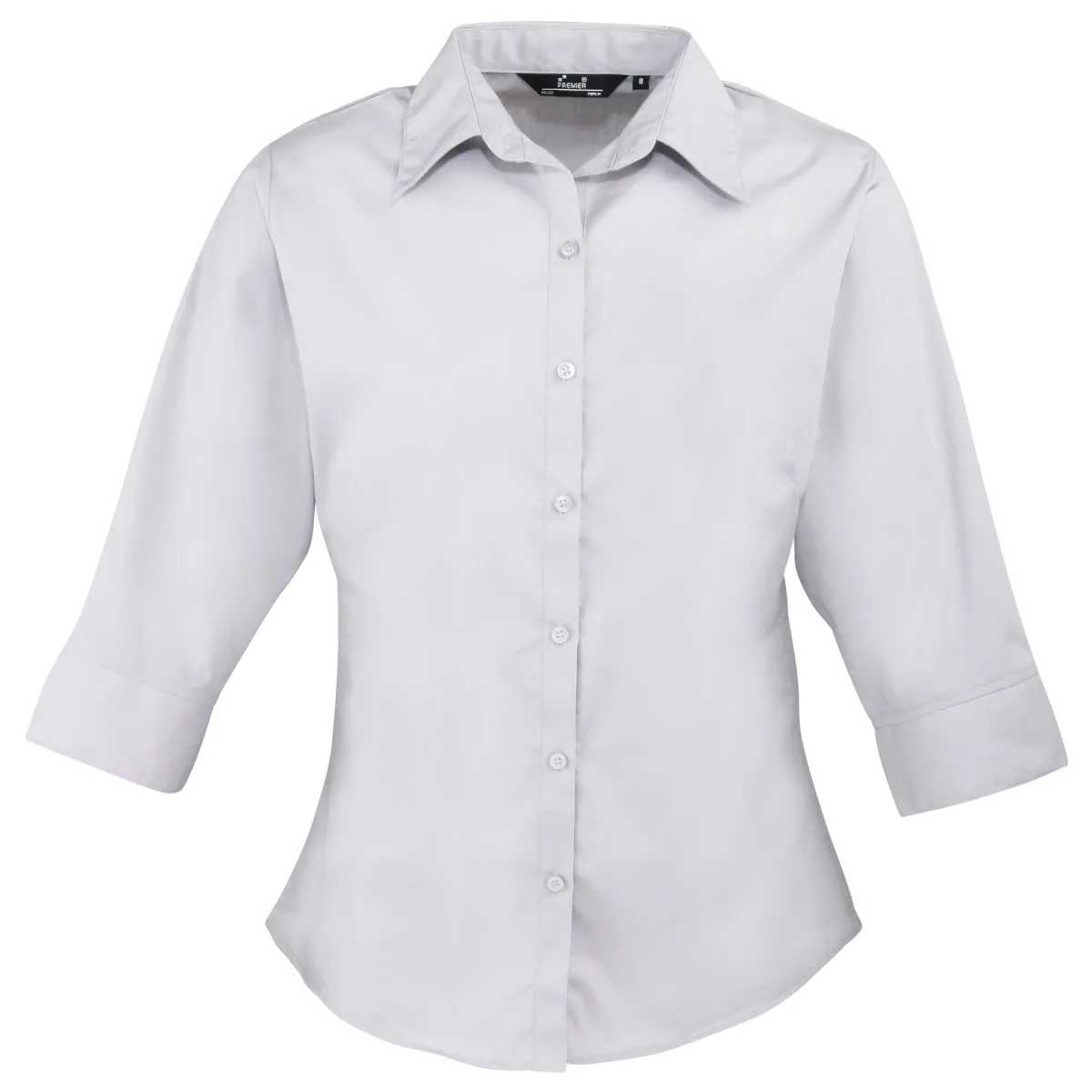 Premier Dames/Dames Popeline 3/4 Mouwen Blouse (Zilver) Prijzen