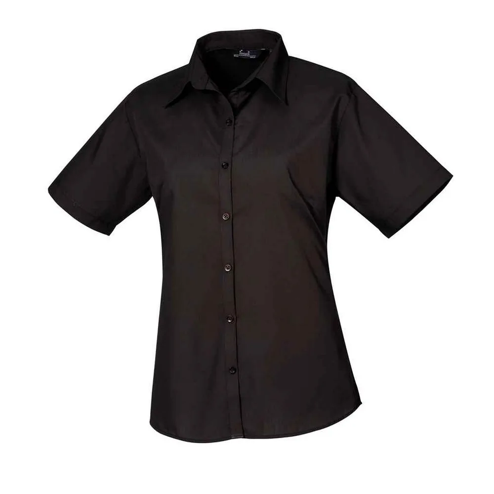Premier Dames/Dames Popeline Blouse met Korte Mouwen (Zwart)