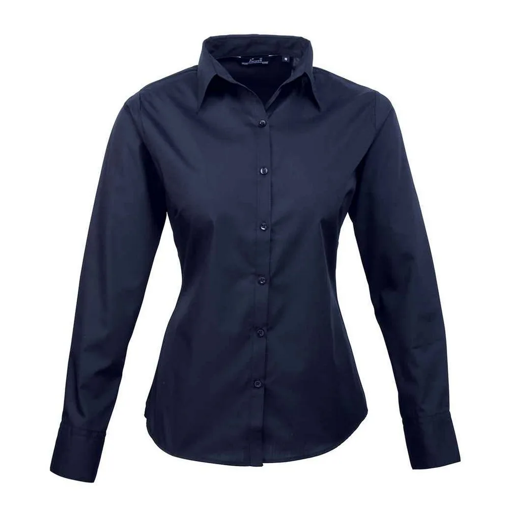 Premier DamesDames Popeline Blouse met Lange Mouwen Marine