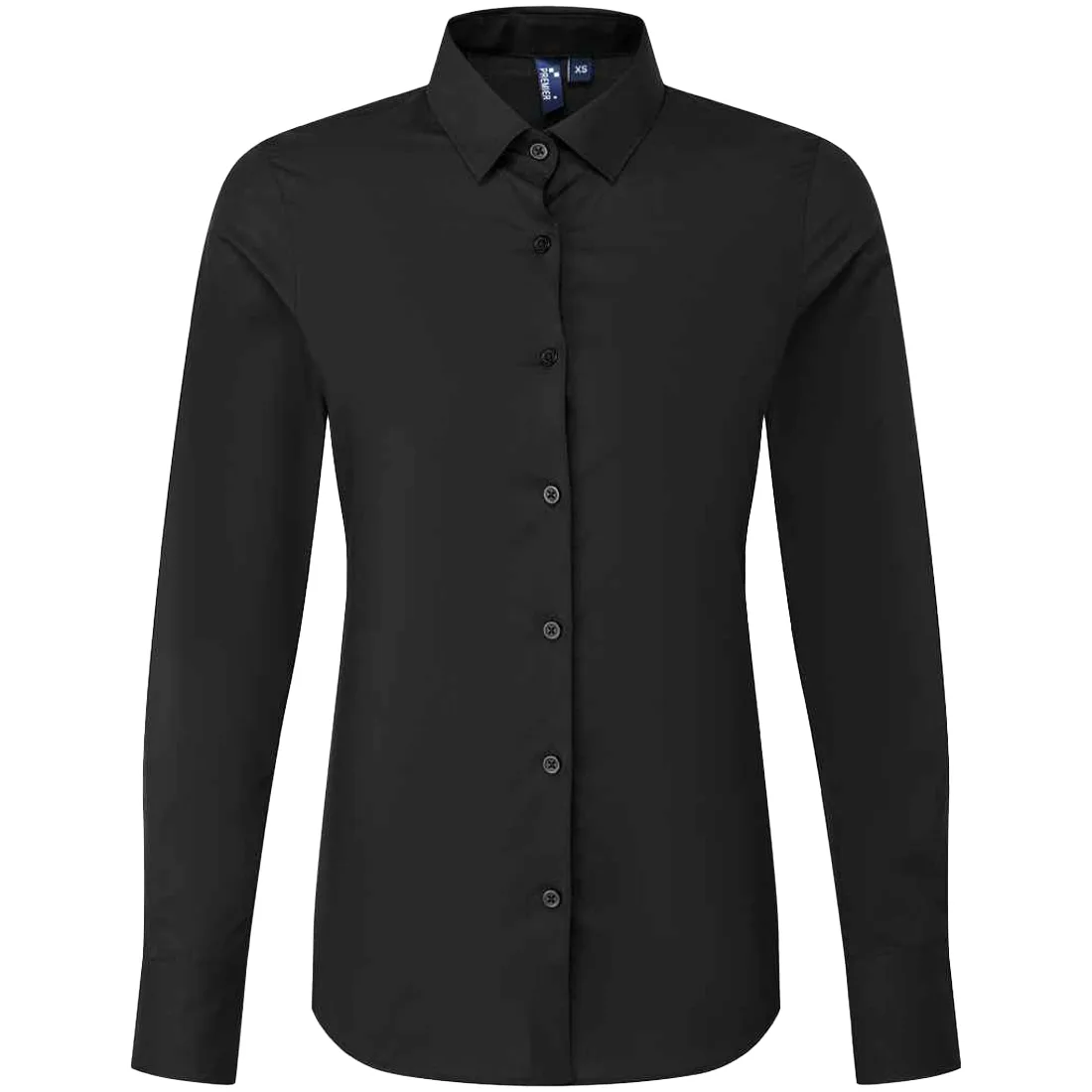 Premier DamesDames Recyclight Poplin Formeel Overhemd Met Lange Mouwen Zwart