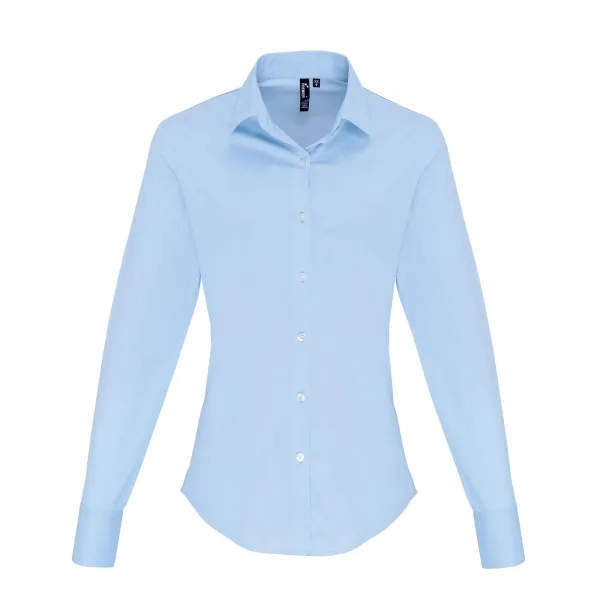 Premier Damesdames Stretch Fit Poplin Blouse met lange mouwen Lichtblauw