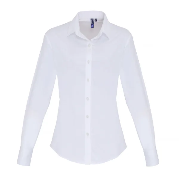 Premier Damesdames Stretch Fit Poplin Blouse met lange mouwen Wit
