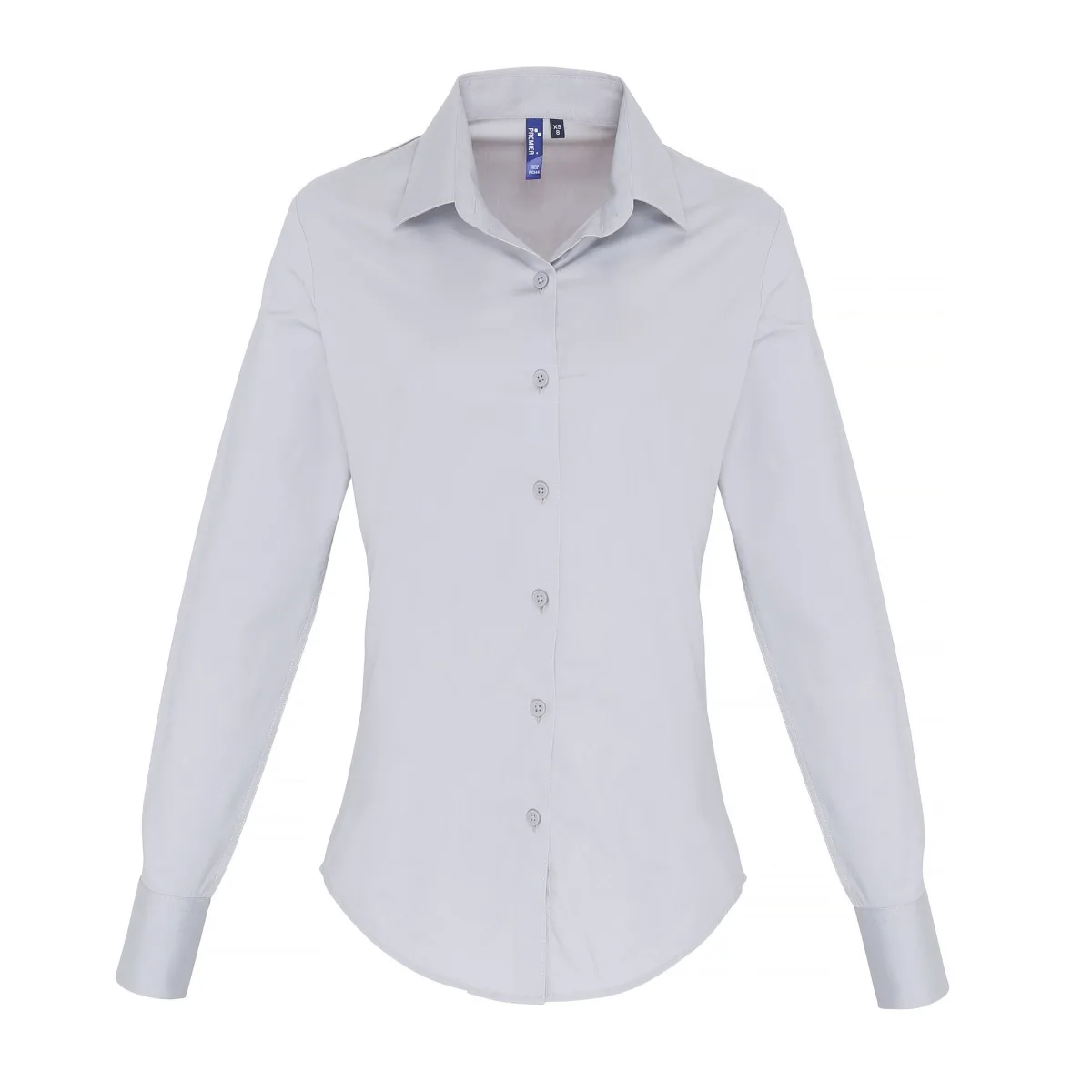 Premier Damesdames Stretch Fit Poplin Blouse met lange mouwen Zilver