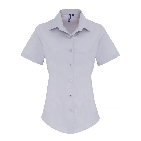 Premier Dames/Dames Stretch Formeel Overhemd Met Korte Mouwen (Zilver) Prijzen