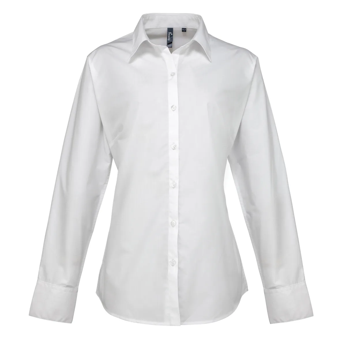 Premier Damesdames Supreme Heavy Poplin Werkhemd met lange mouwen Wit