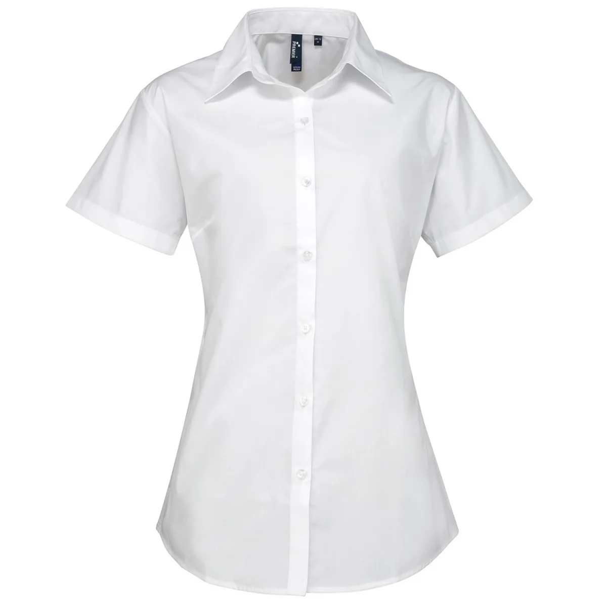 Premier Dames/Dames Supreme Poplin Overhemd met Korte Mouwen (Wit)
