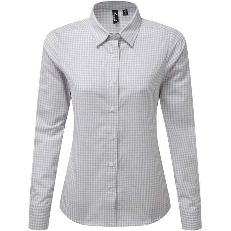 Premier DamesDames Maxton Geruit Overhemd met Lange Mouwen ZilverWit