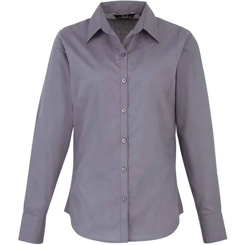 Premier DamesDames Popeline Blouse met Lange Mouwen Staal