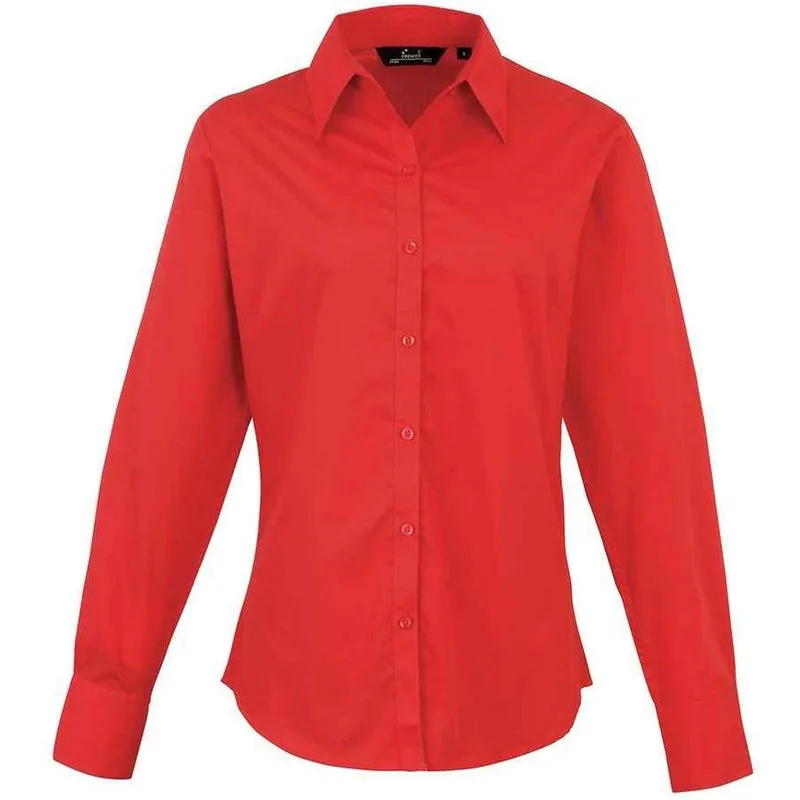 Premier DamesDames Popeline Blouse met Lange Mouwen Rood