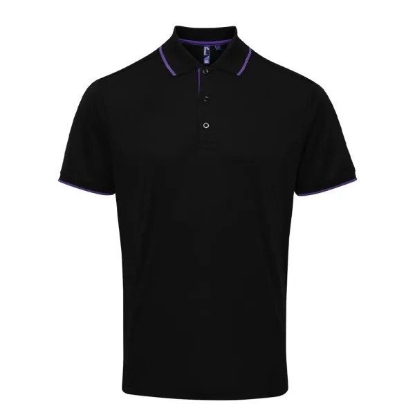 Premier Heren Coolchecker Contrast Pique Poloshirt (Zwart/Paars) Prijzen