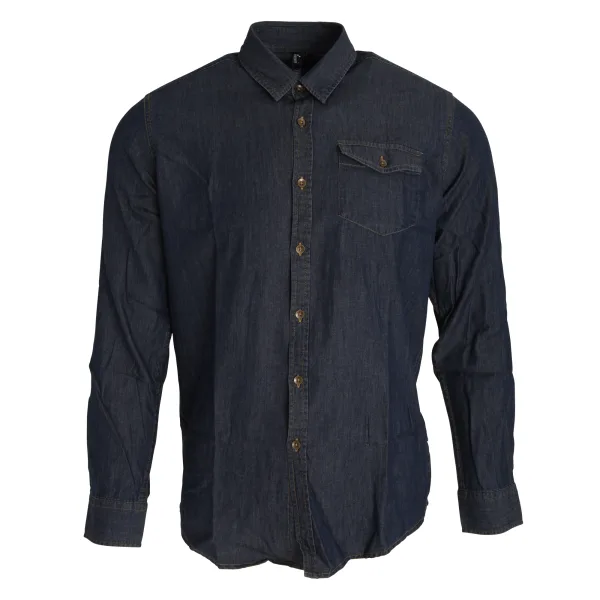 Heren overhemd. Denim shirt met lange mouwen en contrasterende stiksels met twee borstzakken. Geknoopte manchet en mouwbeschermer. Gebogen zoom. Achterste juk. 127gsm. Stof: 100% Katoenen Ringspun Denim. Wasvoorschriften: Huishoudelijk wassen op 40 graden. Herenborstomvang (inches): XS - 36, S - 39, M - 40, L - 42, XL - 44, 2XL - 46, 3XL - 48.