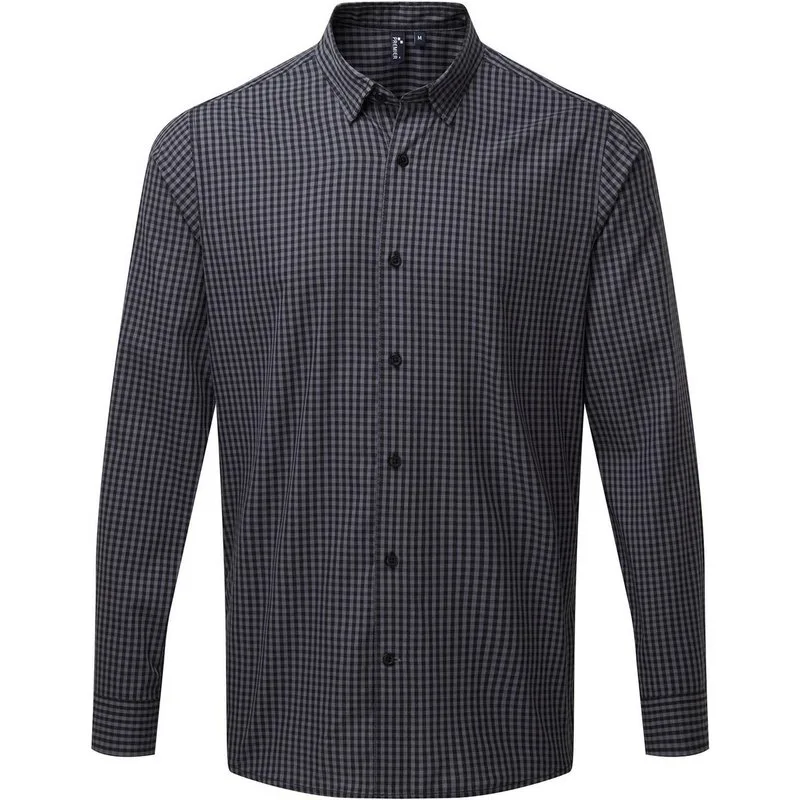 Premier Heren Maxton Geruit Overhemd Met Lange Mouwen StaalZwart
