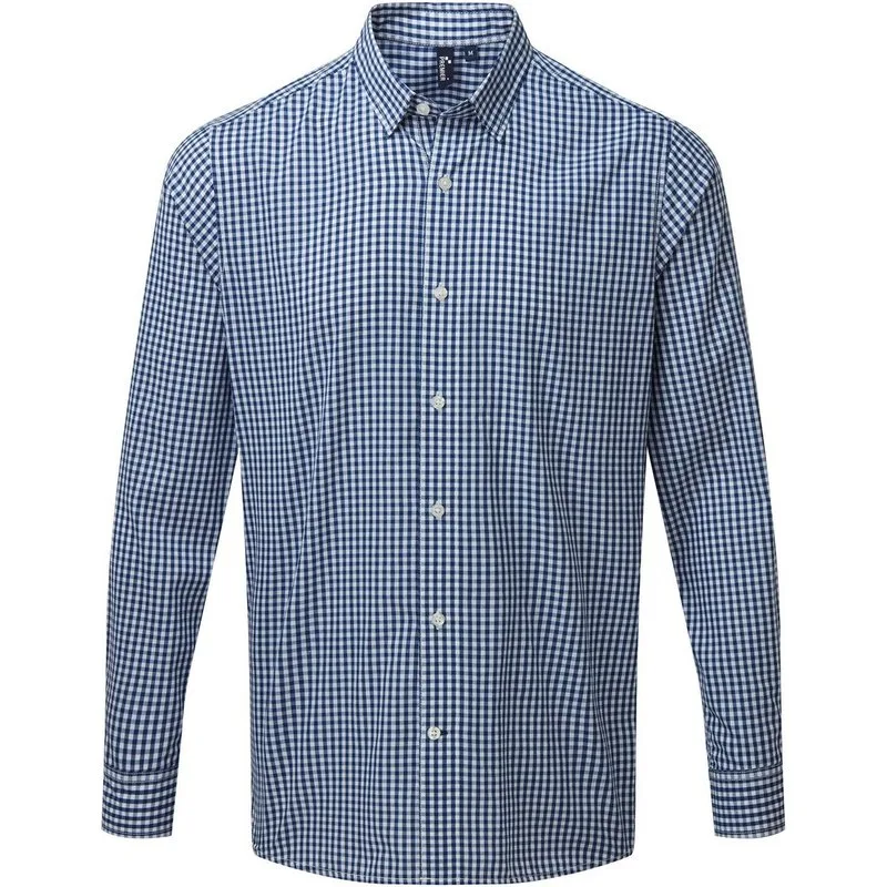 Premier Heren Maxton Geruit Overhemd Met Lange Mouwen Marine Wit