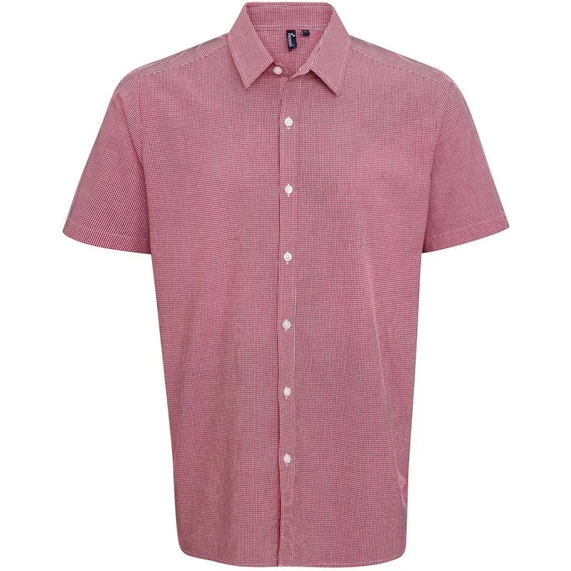 Premier Heren micro gingham geruit katoenen overhemd met korte mouwen