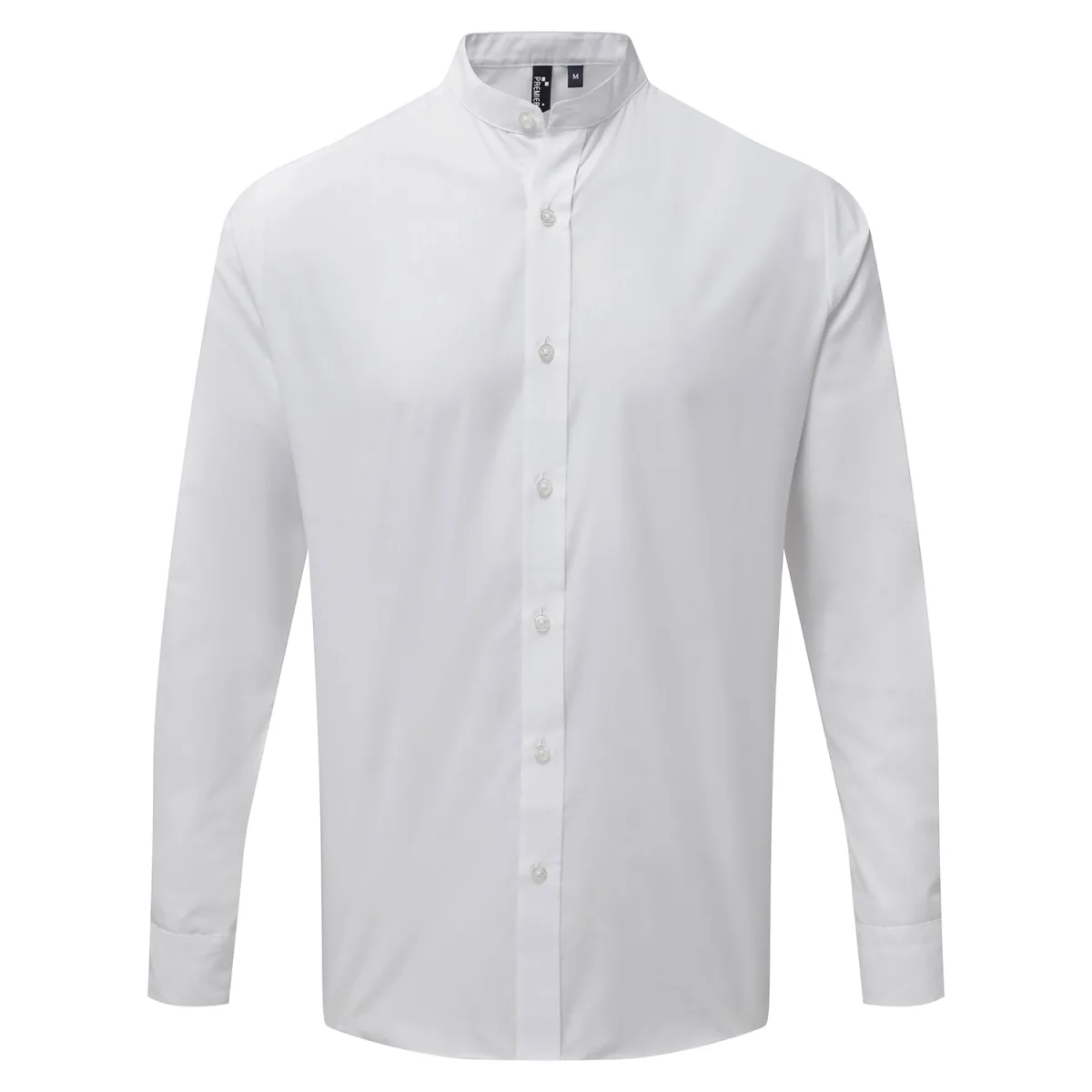 Premier Heren Overhemd met lange mouwen met opa-kraag (Wit)