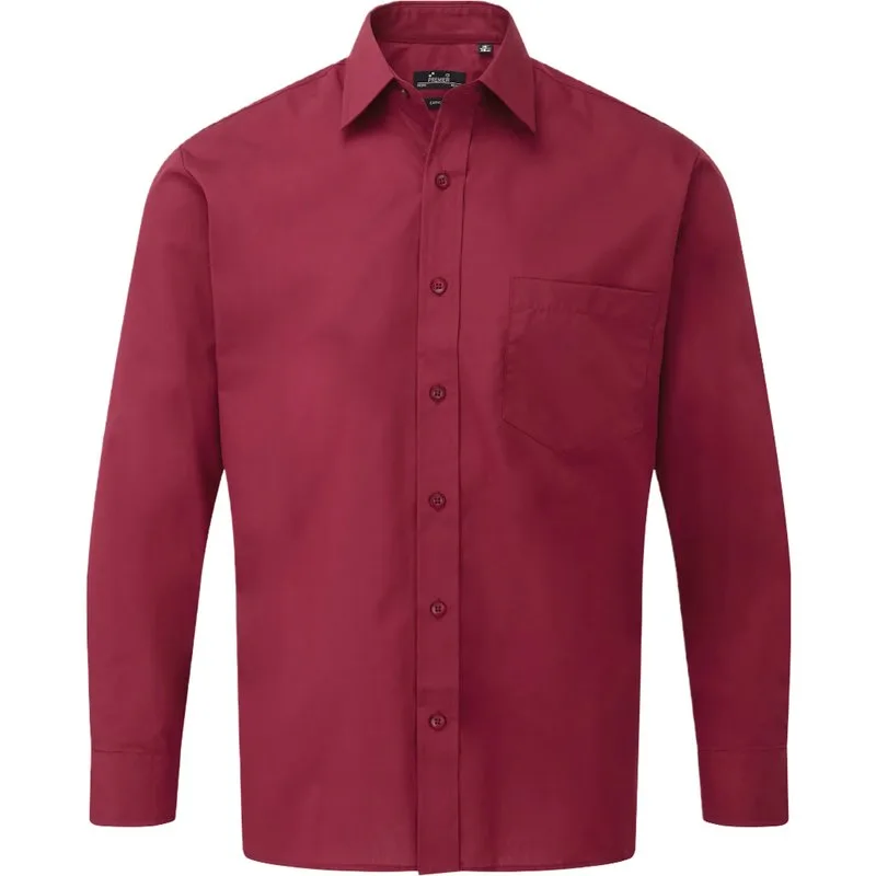 Premier Heren Popeline Overhemd Met Lange Mouwen Bourgondie