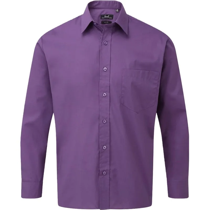 Premier Heren popeline overhemd met lange mouwen