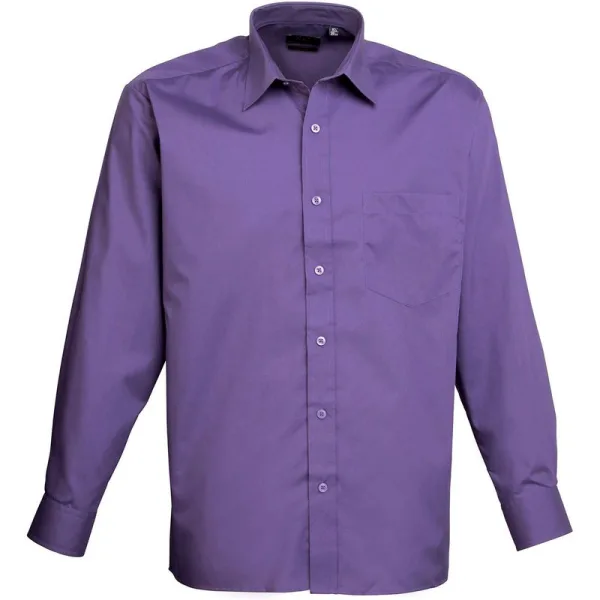 Premier Heren Popeline Overhemd Met Lange Mouwen (Paars) Prijzen