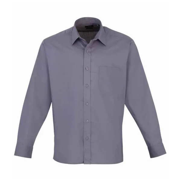 Premier Heren Popeline Overhemd Met Lange Mouwen (Staal) Prijzen