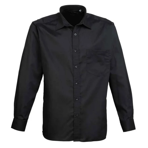 Premier Heren Popeline Overhemd Met Lange Mouwen (Zwart)
