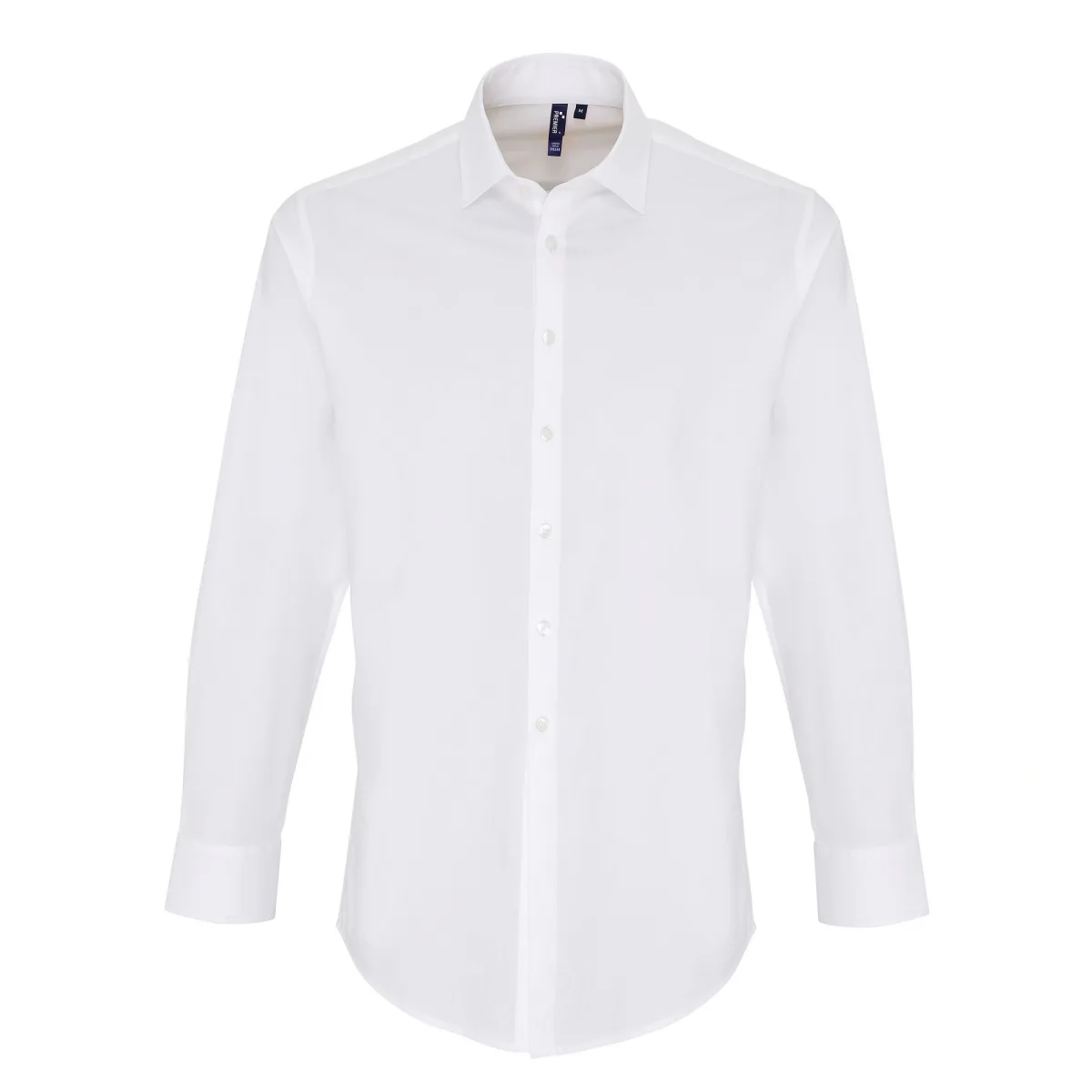 Premier Heren Rekken Pasvorm Popeline Lange Mouwen Shirt (Wit)