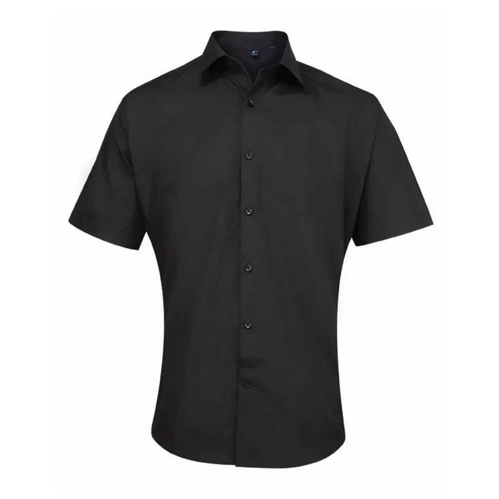 Premier Heren Supreme Poplin Overhemd met Korte Mouwen (Zwart) Prijzen