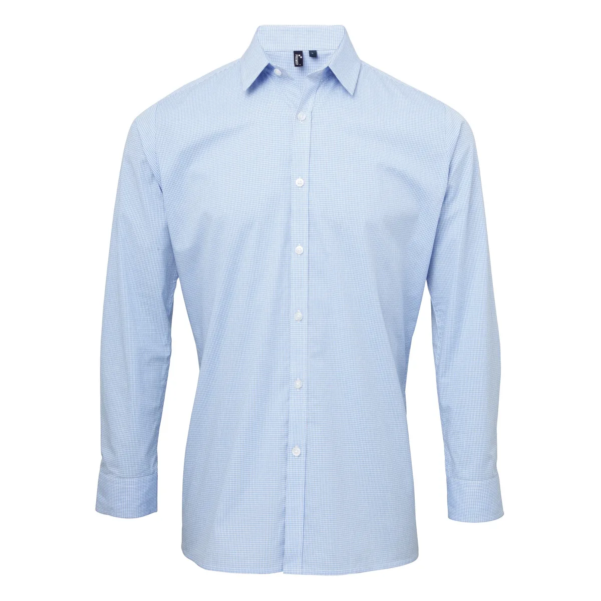 Premier Herenmicrocheck shirt met lange mouwen (Lichtblauw/Wit)