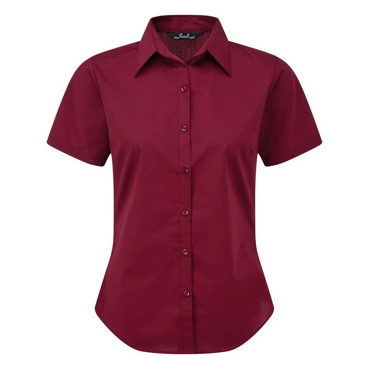Premier Popeline blouse met korte mouwen Gewoon werkoverhemd Bourgondie