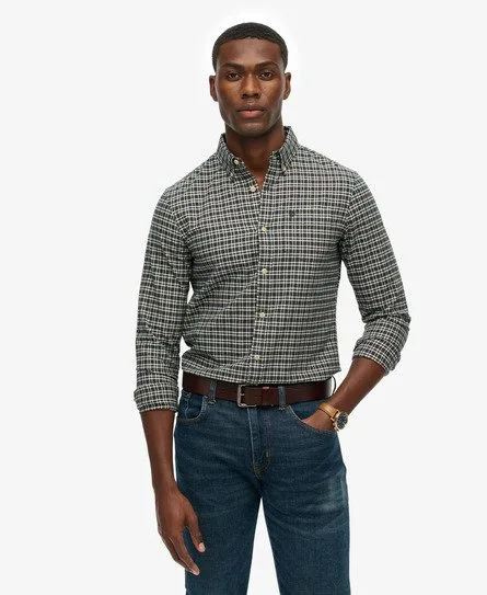 Relaxte pasvorm - de klassieke Superdry-pasvorm. Niet te nauwsluitend, niet te ruim, precies goed. Kies je gebruikelijke maat Knoopsluiting Buttondown-kraag Borstzak Manchetten met knopen Geborduurd Superdry-logo op de borstzak Het Premium Oxford-overhemd met ruitjes is een tijdloze must-have voor elke garderobe. Het slaagt er moeiteloos in om je stijl een luxe vintage twist te geven en je meteen een statement te laten maken. Verder kun je het perfect dragen als laagje, want met zijn onberispeli