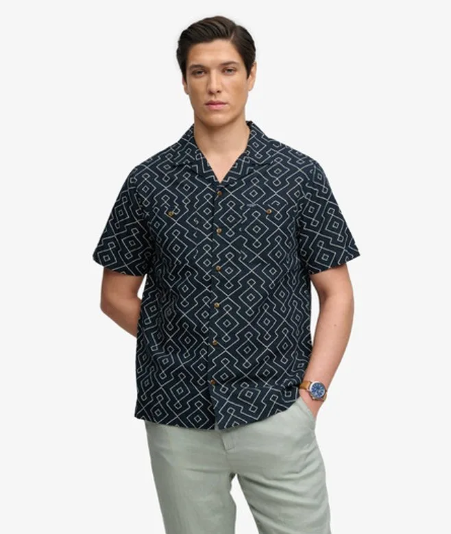 Relaxed pasvorm - de klassieke Superdry pasvorm. Niet te smal, niet te ruim, precies goed. Kies je normale maat Reverskraag Twee borstzakken met knoop Knoopsluiting Korte mouwen Kenmerkend label boven de zoom Ga stijlvol naar het strand tijdens je zomervakantie met ons Premium Printed Strandoverhemd met Korte Mouwen. De opvallende geometrische print brengt plezier en geeft je garderobe de energieboost waar het op wachtte. Een echte blikvanger voor zonnige dagen, makkelijk aan te trekken en perfe