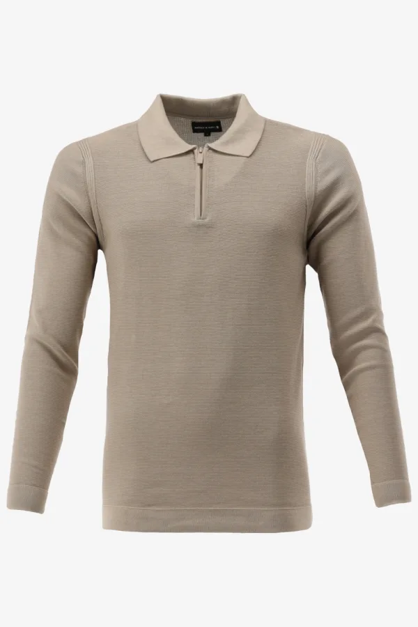 De taupe Harry heren polo met lange mouwen van Presly & Sun, gemaakt van 100% katoen, biedt comfort en stijl in één. Met zijn warme taupe kleur en subtiele merkdetails is deze polo perfect voor diverse gelegenheden en de koelere seizoenen.