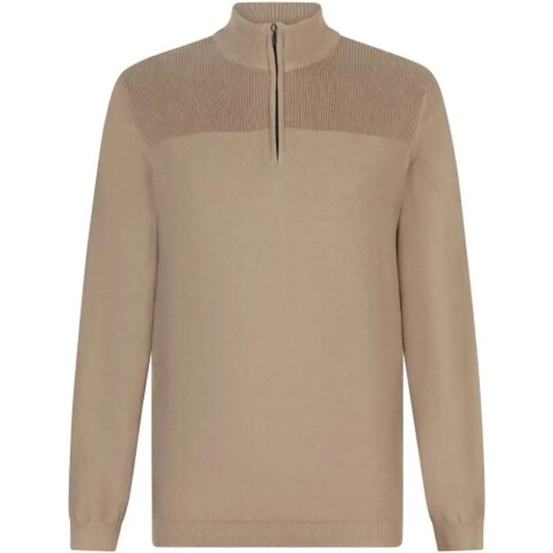 Deze prachtige taupekleurige herentrui van Presly en Sun mag niet ontbreken in jouw kledingkast. Deze fijn gebreide basic coltrui is perfect voor elke gelegenheid en zorgt voor een tijdloze en stijlvolle uitstraling. De trui is voorzien van een hoge kraag met een halve ritssluiting, waardoor je zelf kunt bepalen hoe hoog of laag je de kraag wilt dragen. De mouwen en de kraag zijn afgewerkt met elastische manchetten, wat zorgt voor een comfortabele pasvorm. Deze trui is gemaakt van 100% katoen, waardoor het zacht aanvoelt op de huid en ademend is. Een must-have voor elke modebewuste man! Bestel nu deze geweldige Presly en Sun trui en ervaar zelf de perfecte mix van comfort en stijl.
