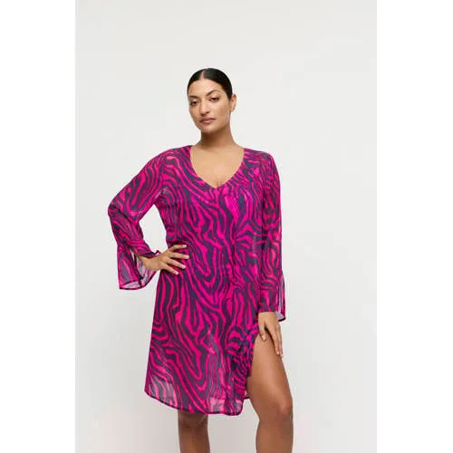 Deze roze PrimaDonna Malabo strandjurk is een lichte en luchtige cover-up voor zonnige dagen aan zee of bij het zwembad. De middellange lengte valt losjes om het lichaam, terwijl de opvallende zebraprint direct in het oog springt. De lange mouwen en de V-hals geven de jurk een elegante uitstraling en zorgen tegelijk voor een prettig, bedekkend gevoel als je even uit de zon wilt.Verfijnde details voor strand en zwembad Gemaakt van polyester, voelt licht aan en is gemakkelijk mee te nemen in je strandtas Roze zebraprint voor een speels en modern effect Lange mouwen bieden extra bedekking en comfort tijdens zonnige momenten V-hals zorgt voor een mooie lijn langs de hals en combineert goed met je bikini of badpak Middellange lengte voor een luchtige look met voldoende dekking Zonder sluiting, zodat je de jurk snel over je zwemkleding aantrektComfortabele cover-up op warme dagenDeze strandjurk draag je eenvoudig over je bikini of badpak wanneer je naar de beachbar loopt, langs de boulevard slentert of even een terrasje pakt. Het soepele materiaal beweegt soepel mee bij elke stap en is daardoor prettig om te dragen op warme dagen.PrimaDonna swimwearPrimaDonna staat bekend om doordachte pasvormen en zorgvuldige afwerking. Ook in de strand- en badmodecollecties zie je dat terug in de keuze voor materialen en details die gericht zijn op comfort en een mooie uitstraling, seizoen na seizoen.Een stijlvolle strandjurk die je zwemmomenten net wat relaxter en verzorgd laat aanvoelen.