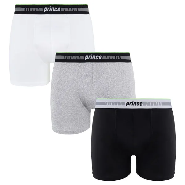 Specificaties: Prince Performance Range 3 Pack Zwart Grijs Wit Heren Boxers MUXPR063