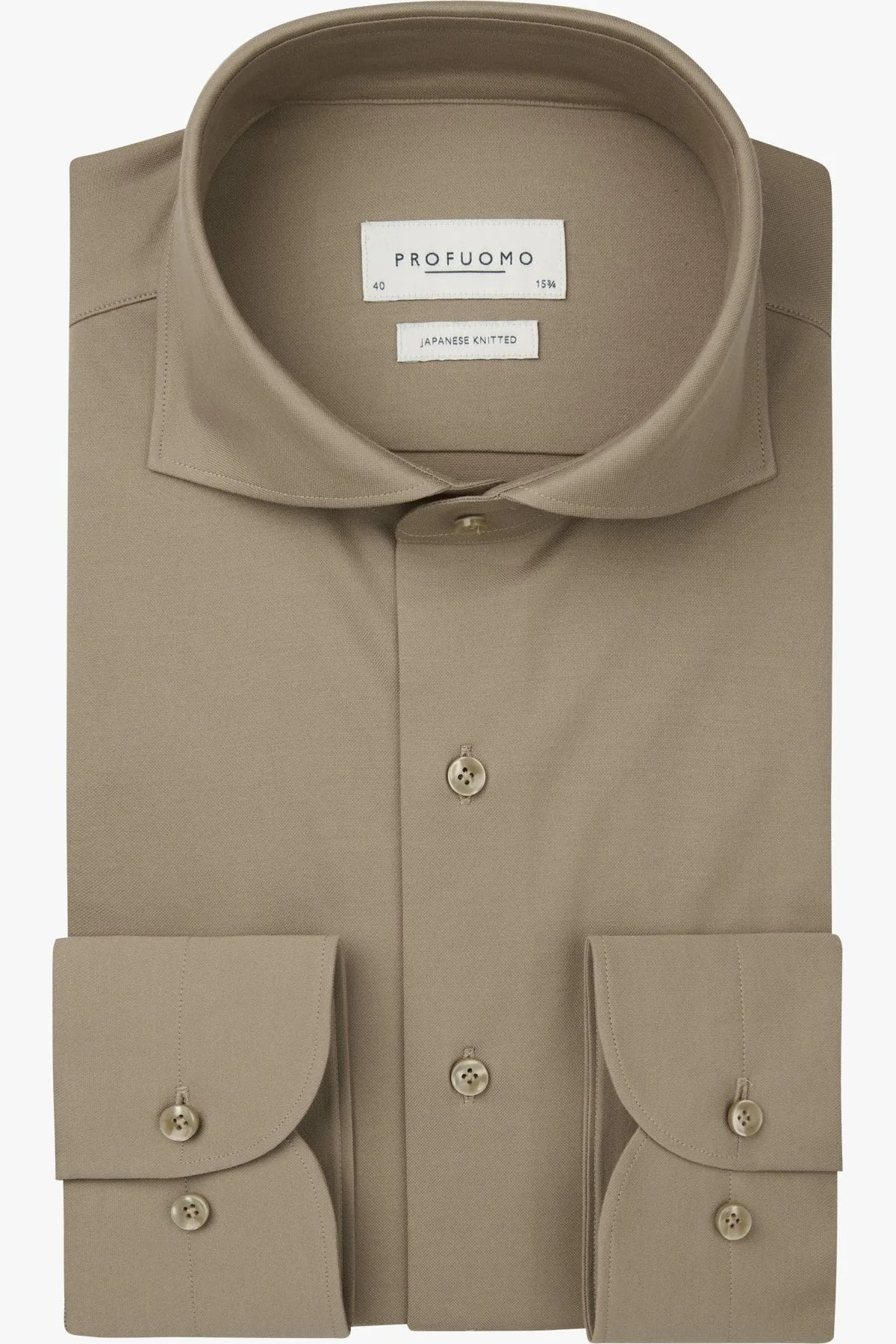 Profuomo Japanese Knitted Jersey shirt beige, Effen