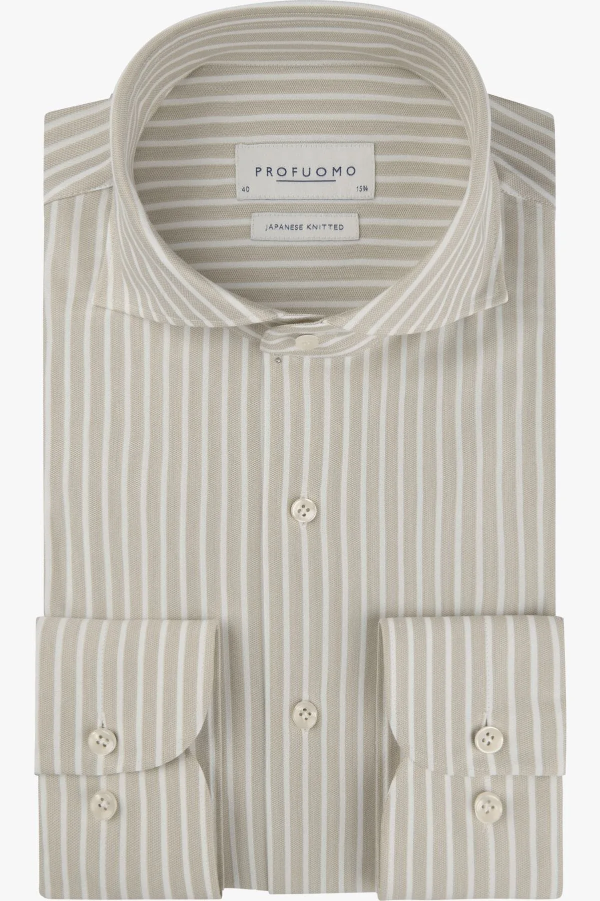 Profuomo Japanese Knitted Jersey shirt beige, Gestreept
