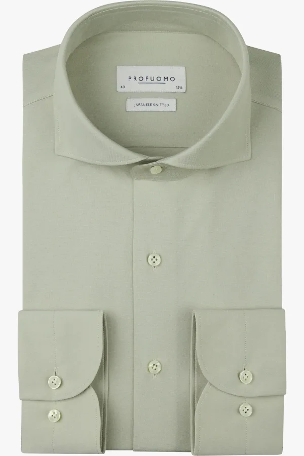 Profuomo Japanese Knitted Jersey shirt groen, Effen
