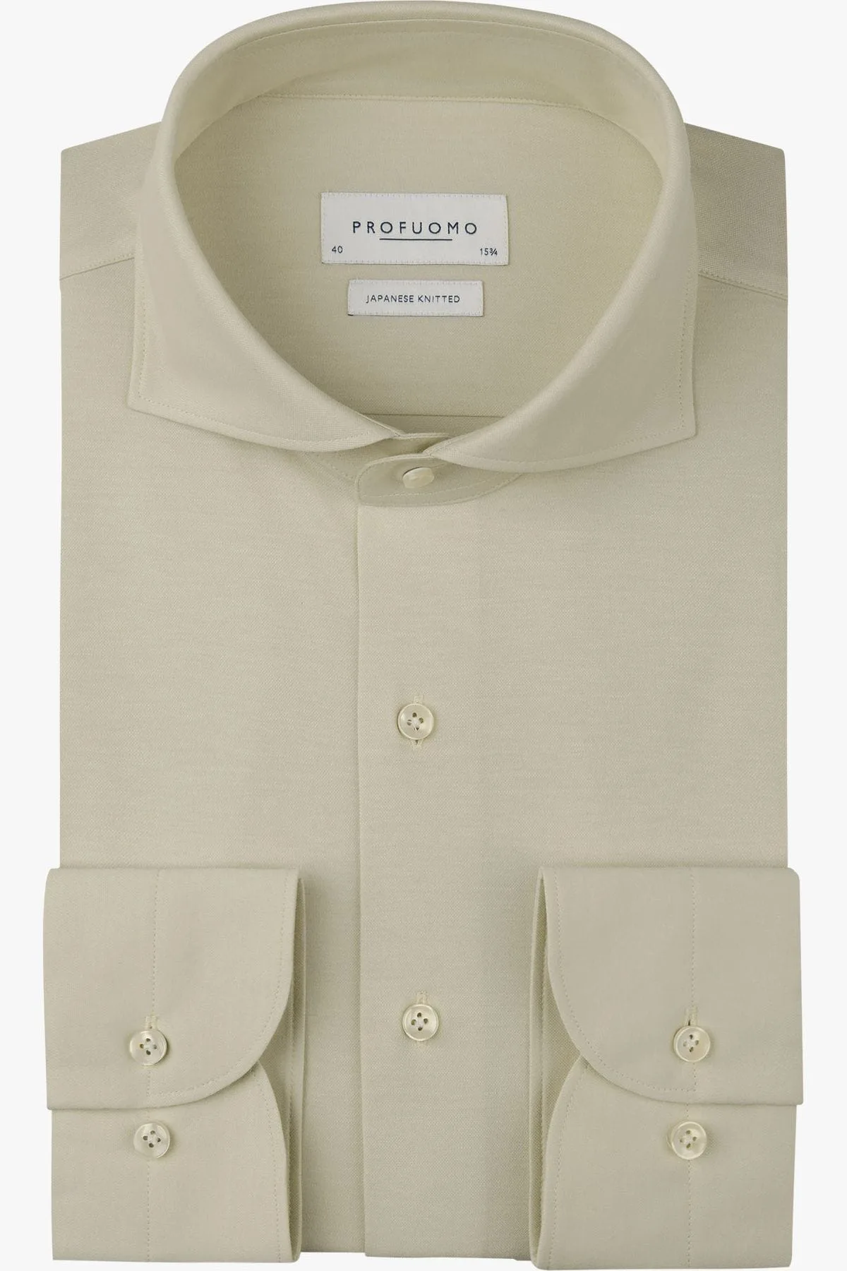 Profuomo Japanese Knitted Jersey shirt zand, Effen