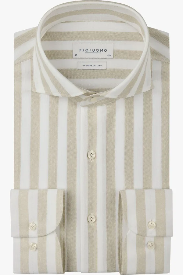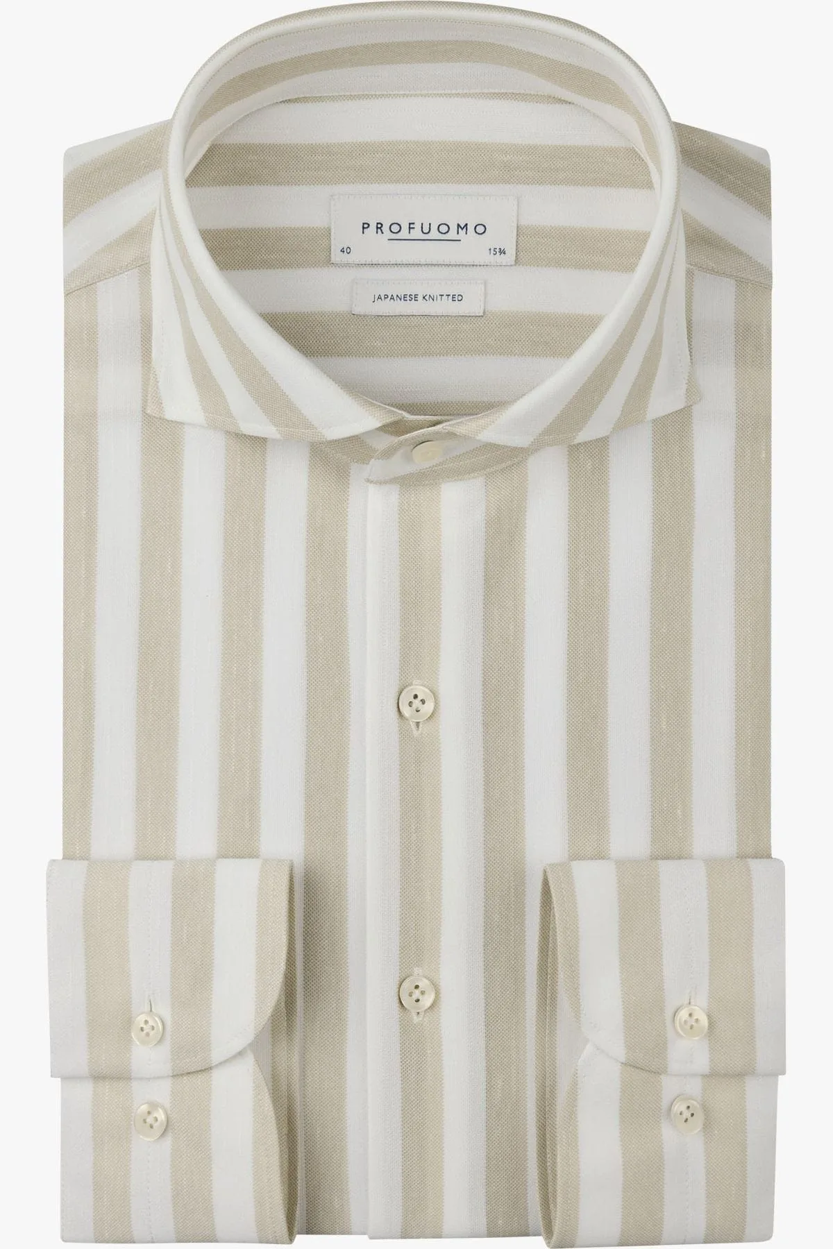 Profuomo Japanese Knitted Linnen Overhemd beige, Gestreept